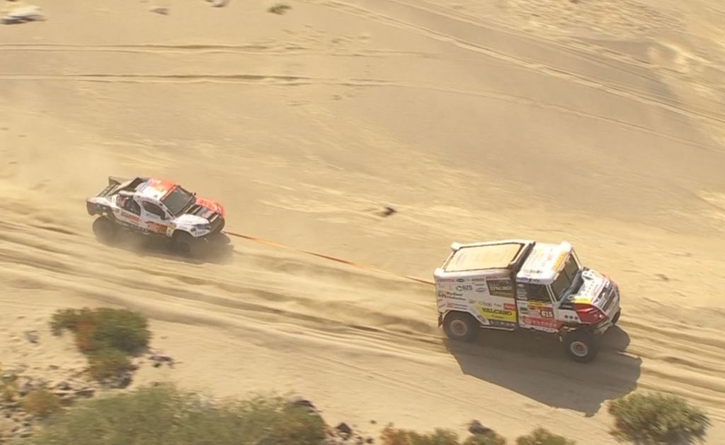 „Prvních 130 kilometrů šlo perfektně. Podle informací od kluků jsme se pohybovali na druhém až třetím místě, což bylo super. Snažili jsme se jet opatrně, ale pokud chce člověk držet tempo s čelem, musí občas zariskovat. A bohužel jeden risk nám nevyšel. V úzkém kaňonu jsme najednou řízli obě pneumatiky. Rozjeli jsme se dál, ujeli asi dva kilometry, ale pak se ozvalo bouchání a praskla nám vrtulka na turbu. Zasekli jsme se tam skoro na tři hodiny, než jsme turbo vyměnili, protože bylo rozpálené jako blázen. Alespoň jsme si pak v noci vyzkoušeli duny, ty jsme projeli bez problémů. Zítra začneme znovu,“ popsal průběh etapy Šoltys.