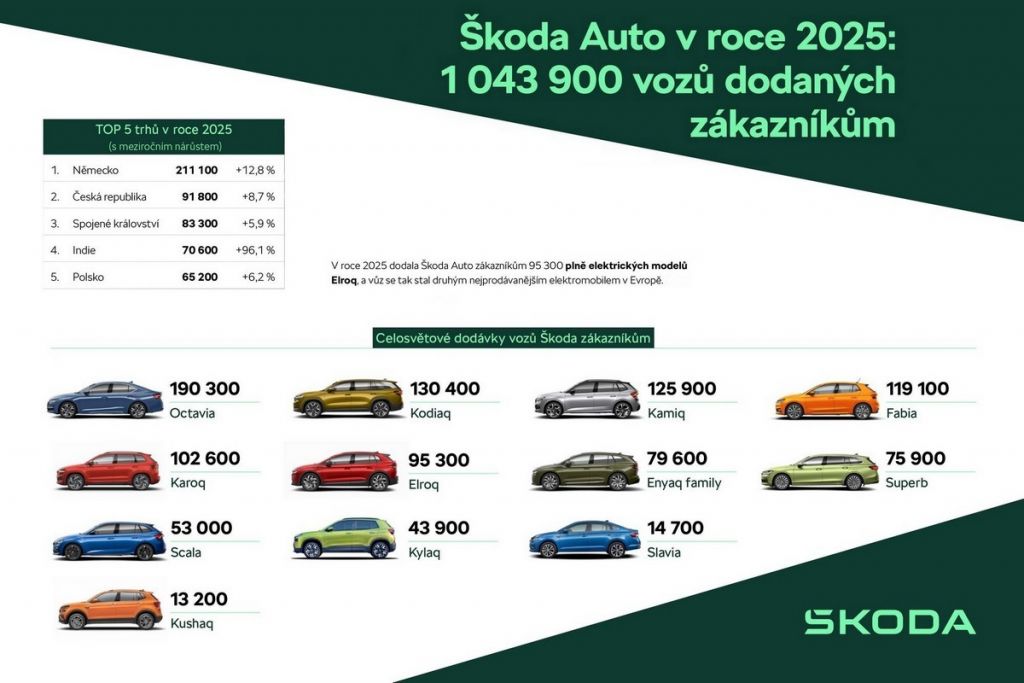 Škoda Auto v roce 2025 dodala 1 043 900 vozů